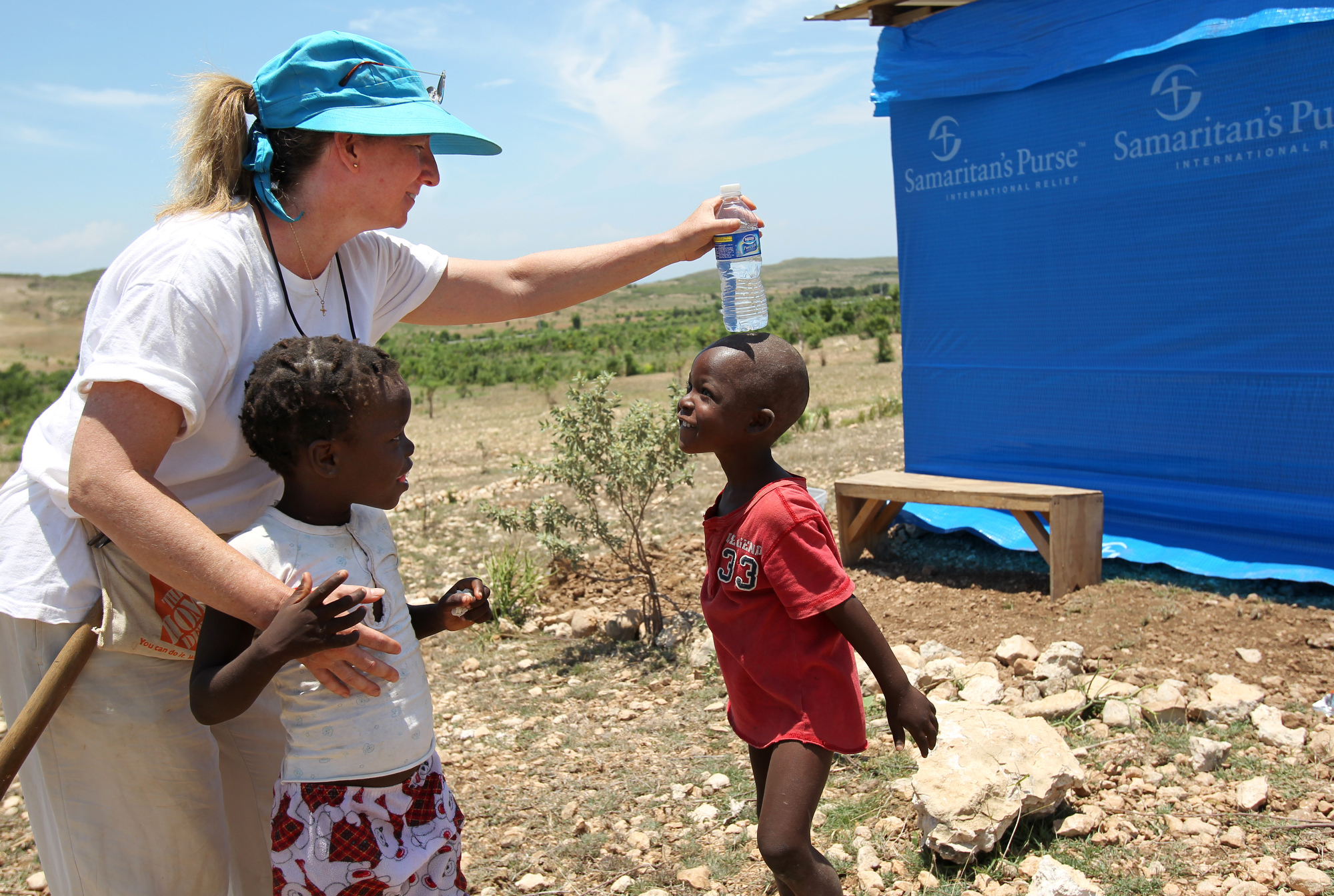 Anne Ross plays with Sandia Joseph, 4, and Jenelson Batizan, 2, right, during the last day of working in Titanyen for this group of the North Carolina Baptist Men Disaster Relief team in Titanyen, Haiti Friday May 7, 2010. ETHAN HYMAN - ehyman@newsobserver.com