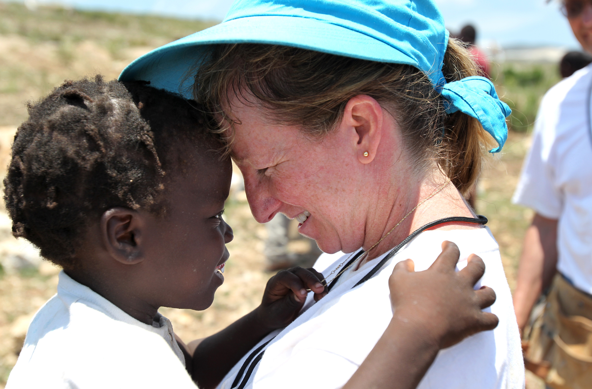 Anne Ross gets close with Sandia Joseph, 4, during the last day of working in Titanyen for this group of the North Carolina Baptist Men Disaster Relief team in Titanyen, Haiti Friday May 7, 2010. ETHAN HYMAN - ehyman@newsobserver.com